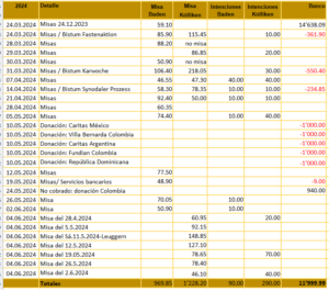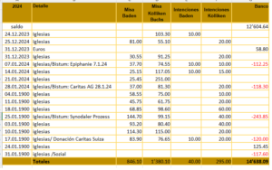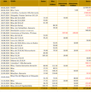 Las intenciones y ofertas de la Eucaristía (Misa) en nuestra Misión Católica de Lengua Española de Aargau.